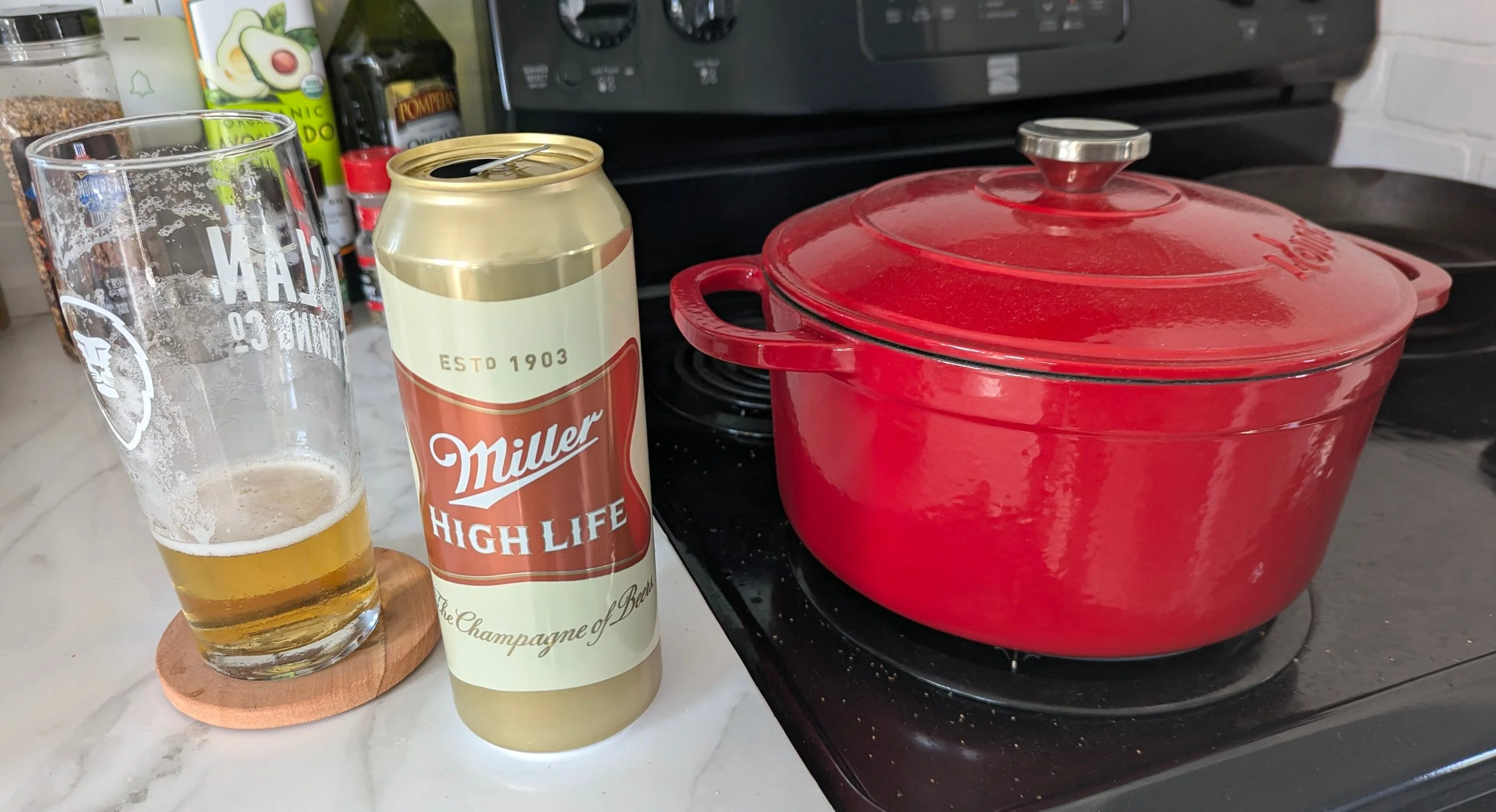 In honor of what looks to be a big red sweep of the elections, I figured today was a good day to pop some champagne (of beers). I decided to make a big red Dutch oven full of chili. This protein dense recipe (to say it is heavy on the meat is an understatement) will last me a month or so, as some will head into the freezer. I didn’t have any beer in the house, so I picked up a single can (24 oz), which is why the photo looks odd. So now I’m day drinking after a long walk on a beautifully sunny late fall day.