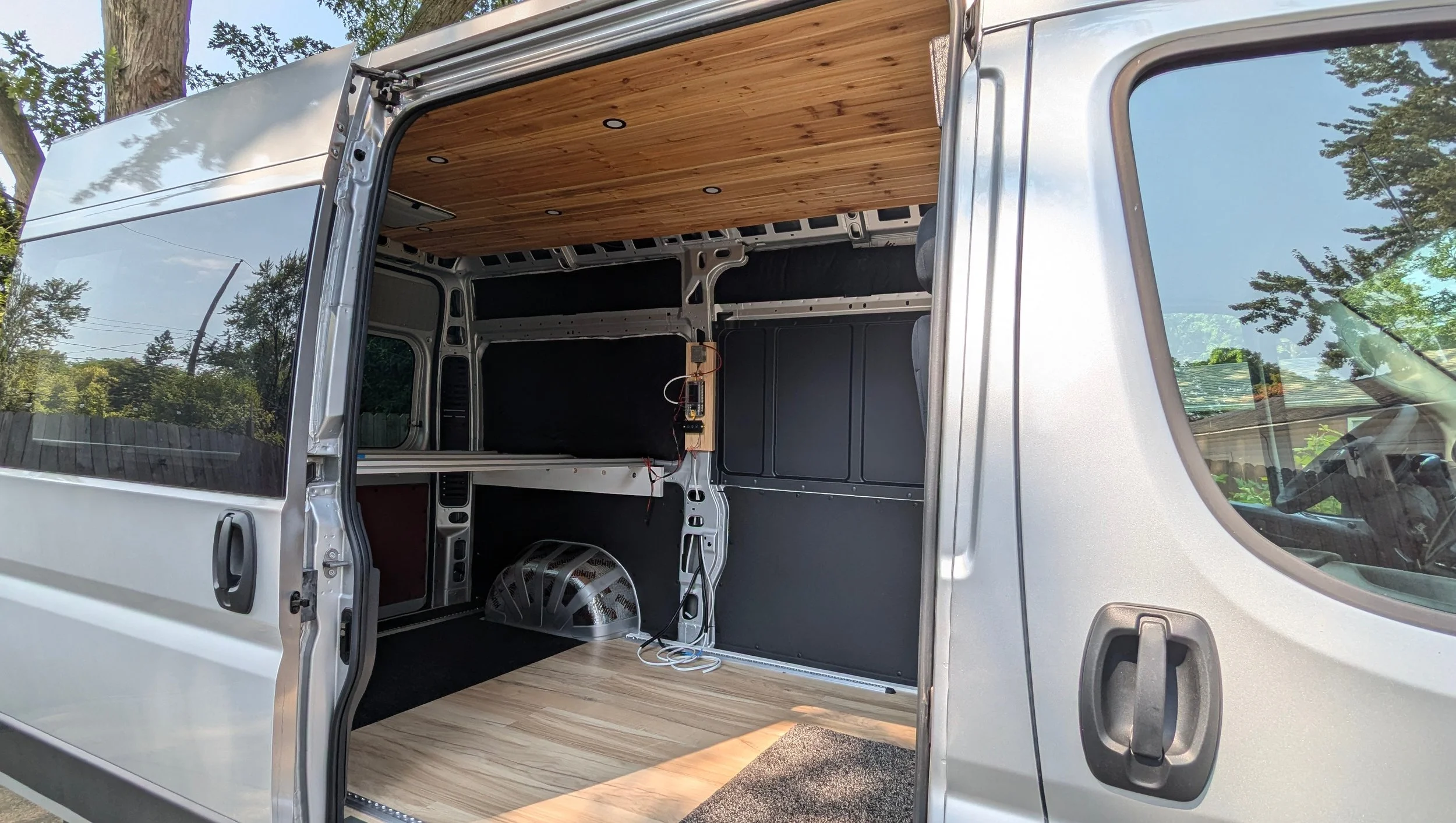 Now I have quite a few of the circuits wired and ready to connect lights, fans, USB charging, etc. I have a few of the fixtures to install, but I first need to build a power cabinet near the wheel well. Most of it will reside below the bed.
